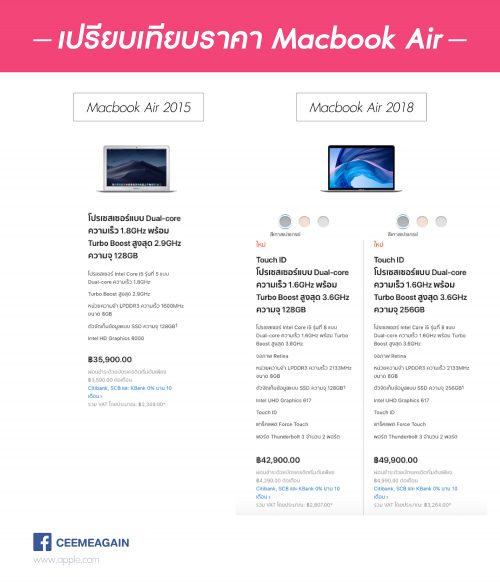 ตัวแรกก็คือ Macbook Air ไม่ได้อัพเดทมานานมาก สินค้าเป็นสิบปีแล้ว แล้วเขาก็รู้สึกว่า Notebook เนี่ยควรจะต้องเปลี่ยน เพราะฉะนั้นก็จะเป็นคอมพลีท รีดีไซน์ใหม่หมดครั้งแรกนะคะ ซึ่ง Macbook Air เป็นอะไรที่มันป๊อบมาก คนชอบ แล้วก็ครั้งนี้เค้าก็พยายามใส่ของเจ๋งเข้าไปในการเอาใจคนนะคะ