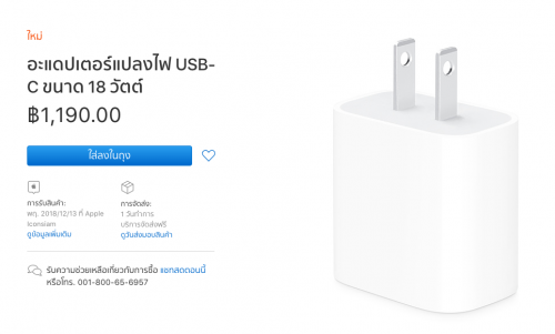 ถ้าใครเข้าร้านออนไลน์ของ Apple เราจะเห็นผลิตภัณฑ์ใหม่เริ่มวางขายผ่านออนไลน์ นั่นก็คือ เคสใสสำหรับ iPhone XR และอีกชิ้นนึงก็คือ อแดปเตอร์ USB-C ขนาด 18W ที่เริ่มขายแยกชิ้น หลังจากที่แถมมาให้เฉพาะ iPad Pro 2018 เท่านั้น จุดเด่นของอแดปเตอร์นี้ก็คือเมื่อใช้กับไอโฟนรุ่นที่รองรับจะช่วยให้ชาร์จไฟได้เร็วขึ้นโดยเฉพาะรุ่นใหม่ๆอย่าง iPhone X, XS และ XR ไอโฟนรุ่นอื่นๆที่รองรับอแดปเตอร์นี้ก็มี iPhone 8 , iPhone 8 Plus และ iPhone XR แต่ถ้านำไปชาร์จกับไอแพดรุ่นอื่นๆ ความเร็วในการชาร์จก็จะอยู่ในอัตราปกติค่ะ
