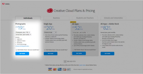 จากเดิมที่คิดอยู่ที่ 9.99 ดอลล่าร์ต่อเดือน โดยยืนราคานี้มาตั้งแต่ปี 2013 แล้วซึ่งตอนนั้นทาง Adobe แจ้งว่าเป็นราคาพิเศษในเวลาจำกัด แต่แพคเกจนี้ได้รับความนิยมอย่างมากก็เลยคงราคานี้ไว้มาตลอด
