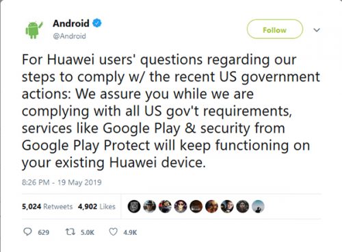 กูเกิ้ลบอกว่า คงจะ…ให้บริการ GOOGLE PLAY / Play Protect กับรุ่นปัจจุบัน อันนี้คลุมเครือมากและดูไม่เฟิร์มอย่างแรง เพราะเอาจริงๆ ทางการสั่งหยุดทุกธุรกรรมหมายถึงหยุดทันทีเพราะเป็นประกาศฉุกเฉิน ไม่มีการอิดออด ไม่เหลือเวลาให้แม้แต่โอดครวญเลย