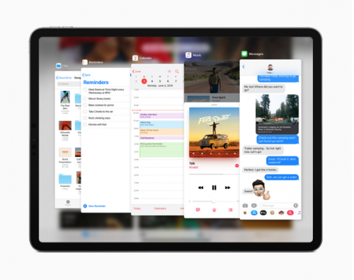 สิ่งที่เน้นย้ำเป็นอย่างมากก็คือ Split view ทำให้ตอนนี้ผู้ใช้ iPad สามารถทำงานกับหลายๆ ไฟล์และเอกสารจากแอปเดียวกันในเวลาเดียวกัน หรือสามารถดูและสลับไปมาระหว่างแอปต่างๆ อย่างรวดเร็วใน Slide Over (เลื่อนเข้าออก) ได้แล้ว ตัวอย่างเช่นลูกค้าสามารถเขียนอีเมลในขณะที่ดูอีเมลอีกฉบับเคียงข้างกัน หรือเข้าถึงหลายๆ แอปเช่น Messages หรือ Calendar โดยเพียงแค่ปัดนิ้ว App Exposé (กางแอป) ช่วยให้คุณสามารถดูหน้าต่างที่เปิดอยู่ของแอปใดแอปหนึ่งได้อย่างรวดเร็วเพียงแค่แตะ
