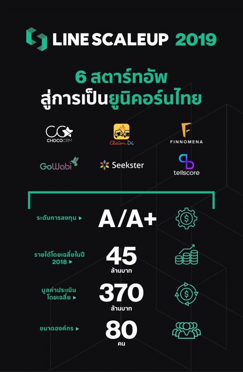 โดยทั้ง 6 สตาร์ทอัพสามารถนำเสนอแผนธุรกิจได้อย่างดีเยี่ยม และล้วนมีพื้นฐานองค์ประกอบด้านองค์กรและด้านธุรกิจที่ค่อนข้างดี มีความเป็นไปได้ในการต่อยอดสู่สตาร์ทอัพชั้นนำของประเทศ และที่สำคัญสู่การเป็นยูนิคอร์นตัวแรกของประเทศไทย โดยหลังจากนี้ นอกจากสตาร์ทอัพทั้ง 6 ทีมจะได้รับสิทธิพิเศษในการเข้าใช้แพลตฟอร์มและเทคโนโลยีของLINE แล้ว พวกเขาจะได้เข้าสู่ LINE ScaleUp Camp ที่อัดแน่นไปด้วยการอบรม, Coaching เชิงลึกทั้งในด้านเทคโนโลยี ด้านธุรกิจ และด้านการลงทุน รวมไปถึงทริปสุดพิเศษเพื่อพบปะพูดคุย เรียนรู้จากสตาร์ทอัพระดับยูนิคอร์นตัวจริงในต่างแดนตลอดเดือนกรกฏาคม – ตุลาคมนี้ เพื่อบ่มเพาะให้สตาร์ทอัพทั้ง 6 สามารถประยุกต์ใช้ความรู้ ประสบการณ์และทักษะที่ได้พัฒนาธุรกิจตนเองให้ก้าวไกลสู่ระดับยูนิคอร์น โดยจะทำการคัดเลือกเพื่อหาทีมสตาร์ทอัพที่ดีที่สุดในเดือนพฤศจิกายนต่อไป
