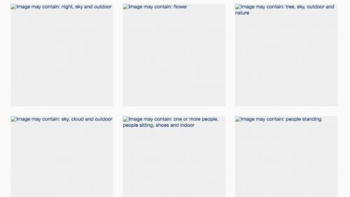 การที่ Facebook ล่มเมื่อวันก่อน ทำให้หลายรูปบนหน้าฟีด ไม่สามารถโหลดขึ้นมาได้ แต่จะขึ้นแค่ชื่อแท็กข้อความแทน นั่นก็คือสิ่งที่ AI ใช้ในการแยกรูปภาพและเลือกขึ้นมาแสดงผลให้เราเห็น เช่น “image may contain: people smiling, people dancing, wedding and indoor” หรือ “image may contain: cat.”