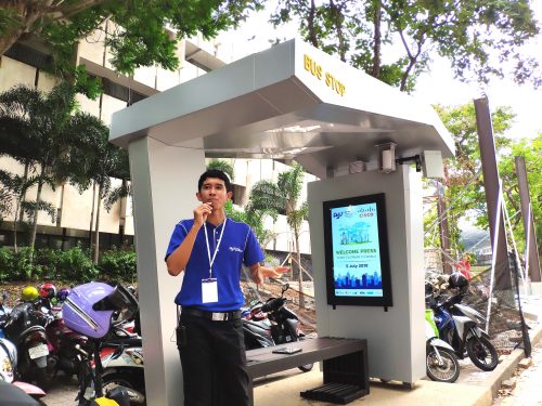 ในส่วนของการเดินทางนั้น จะมีการใช้รถ EV เป็นพาหนะหลักในการรับส่ง ซึ่งตรงที่เป็นจุดรอรถจะมีป้ายอัจฉริยะ แสดงตำแหน่งรถ ระยะเวลาที่รถจะมาถึงได้แบบ Real Time