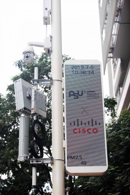 จากการที่มหาวิทยาลัยสงขลานครินทร์ (มอ.) ซึ่งรับหน้าที่เป็นที่ปรึกษาให้กับ 14 จังหวัดภาคใต้ เพื่อให้แต่ละเมืองได้เห็นโมเดลรูปแบบการนำเทคโนโลยีมาพัฒนาเมืองและนำไปปรับใช้กับพื้นที่เขตความรับผิดชอบของตน ความร่วมมือระหว่างซิสโก้และมอ. นับเป็นการตอบโจทย์การสร้างโมเดลสมาร์ทซิตี้ให้เป็นต้นแบบการพัฒนาเมืองแห่งอนาคตที่มีความสมดุลในทุกมิติ ซิสโก้มีส่วนช่วย มอ.ในการพัฒนานวัตกรรมสมาร์ทโซลูชั่น แพลตฟอร์ม IoT และเติมเต็มความสามารถทางดิจิทัลของบุคลากรเราเพื่อการพัฒนาสมาร์ทซิตี้ที่เป็นไปอย่างราบรื่นและสมบูรณ์