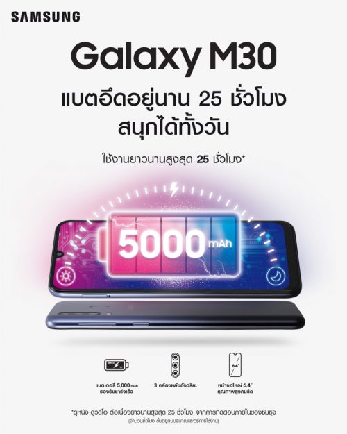 ซัมซุงร่วมกับ ลาซาด้า พร้อมวางจำหน่าย “กาแลคซี่ เอ็ม 30″ (Galaxy M30) อย่างเป็นทางการบนลาซมอล (LazMall) แล้ววันนี้พร้อมโปรโมชั่นของแถมสุดพิเศษ! ต้อนรับการเปิดตัวสัปดาห์แรก มั่นใจเจาะตลาดคนรุ่นใหม่ด้วยจุดเด่นแบตอึด จอใหญ่ไร้ขอบ และกล้องหลัง 3 ตัว ถือเป็นอีกหนึ่งสมาร์ทโฟนสเปคครบครันในราคาที่จับต้องได้