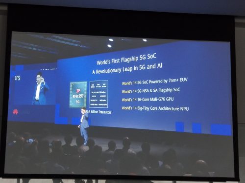 ชิปเซ็ต Kirin 990 (5G) ของหัวเว่ย เป็นชิปเซ็ต 5G รุ่นแรกของโลก ทั้งยังเป็นชิปเซ็ตที่มีขนาดเล็กที่สุดสำหรับสมาร์ทโฟน 5G ด้วยกระบวนการผลิต 7 nm+ EUV โดยบรรจุทรานซิสเตอร์ไว้มากถึง 10,300 ล้านตัว พร้อมด้วยโมเด็ม 5G ที่ติดตั้งมาในตัว ซึ่งทำให้ขนาดของชิปเซ็ตเล็กลง ทั้งยังใช้พลังงานน้อยลงอีกด้วย สำหรับในส่วนของ CPU หลัก ชิปเซ็ต Kirin 990 มีโครงสร้างแบบสามระดับเพื่อการประหยัดพลังงาน โดยมีคอร์ประมวลผลขนาดใหญ่มาก 2 คอร์ ขนาดใหญ่ 2 คอร์ และขนาดเล็กอีก 4 คอร์ ทำความเร็วสูงสุดได้ถึง 2.86 GHz ส่งผลให้การทำงานโดยรวมดีขึ้น 10% แต่ประหยัดพลังงานเพิ่มขึ้น 35%