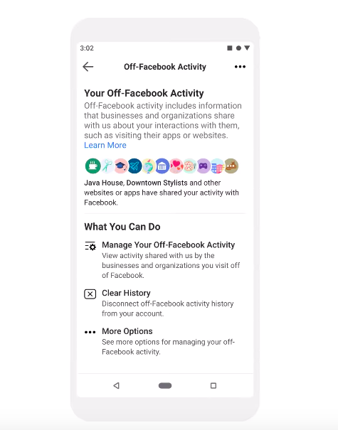 นอกจากนั้นยังมีฟีเจอร์ใหม่ Off Facebook Activity Control เอาไว้ปิดการแชร์ข้อมูลระหว่าง Facebook กัยเว็บไซต์หรือแอปที่เป็นพันธมิตร ถ้าไม่อยากให้มีการแชร์ข้อมูลเกิดขึ้นให้เราไปปิดในการตั้งค่าได้ แต่ตอนนี้เปิดให้บริการใน 3 ประเทศก่อน คือ สเปน ไอร์แลนด์และเกาหลีใต้ ในอนาคตจะขยายการใช้งานในประเทศอื่นๆอีก