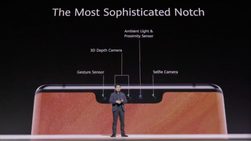 หน้าจอยังมีรอยบากแต่ขนาดเล็กลง ซึ่งเขาจะติดตั้งมีกล้อง 3D Depth Camera 2 ตัว กล้องเซลฟี่ 1 ตัวและเซ็นเซอร์ต่างๆ เอาไว้ ถ้าสักเกตดีๆจะเห็นว่าด้านบนตัดช่องหูฟังออกไป เพราะเค้าใส่เทคโนโลยี HUAWEI Acoustic Display มาให้แค่เอาหูแนบจอก็ได้ยินเสียงแล้ว
