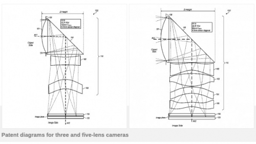 สิทธิบัตรนี้มีชื่อว่า “Folded lens system” ซึ่งแสดงรูปแบบของการชิ้นเลนส์แบบ Periscope แบบเดียวกับที่ใช้ในสมาร์ทโฟนแอนดรอยด์หลายๆรุ่น ด้วยการวางชิ้นเลนส์ในแนวตั้ง 3 – 5 ชิ้นจากนั้นใช้แท่งปริซึ่มในการสะท้อนภาพซึ่งจะเน้นเพิ่มขีดความสามารถของมือถือให้ซูมได้ไกลขึ้น