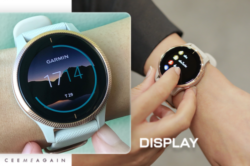 สิ่งที่สะดุดตาสุดๆก็คือเรื่องของหน้าจอ เพราะ Garmin Venu ต่างจากรุ่นที่ผ่านๆมาด้วยการเลือกใช้หน้าจอสัมผัสแบบ Amoled เป็นครั้งแรก แบบดียวกับสมาร์ทโฟนรุ่นท็อปๆ ทำให้น่าใช้งานมากขึ้น การแสดงผลต่างๆโดดเด่นด้วยเฉดสีที่เพิ่มขึ้น ภาพและตัวอักษรที่ได้คมชัด น่าใช้งานมากขึ้น แถมยังเลือกเปลี่ยน watch face ได้ง่ายๆตามสไตล์ของเราเลยค่ะ