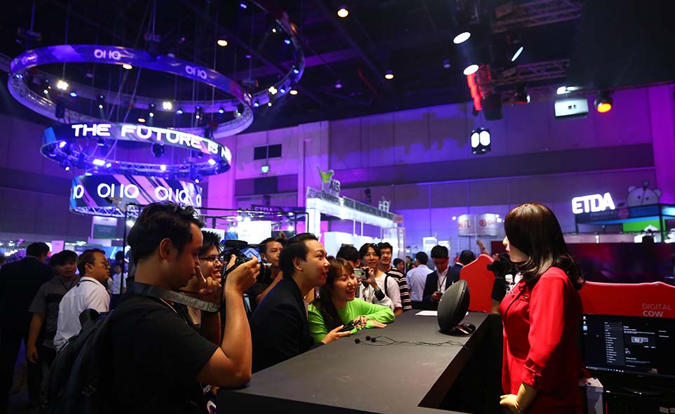 ปีนี้ต้องยอมรับว่าเทรนด์ Robotics มาแรง ในงานจึงยกเหล่าหุ่นยนต์มานำเสนอเพื่อให้เห็นว่าหุ่นยนต์ในอนาคตจะสามารถทำงานได้อย่างชาญฉลาดขึ้น โดยในงานมีหุ่นยนต์จากหลายค่ายมาให้ผู้เข้าชมงานได้ตื่นตา ตื่นใจ และพูดคุย และได้เห็นถึงความฉลาดล้ำของพวกเขา เพราะเชื่อว่าอนาคตเขาจะมาช่วยมนุษย์ทำงานได้อย่างสบายๆ