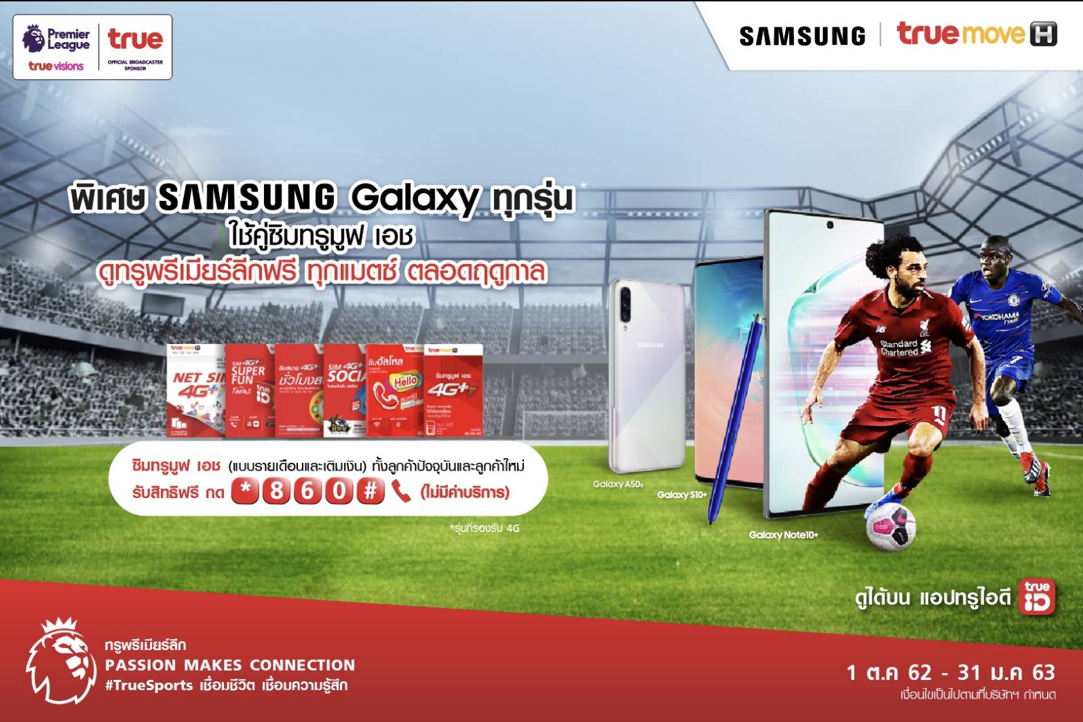 ข่าวดีสำหรับผู้ใช้สมาร์ทโฟนซัมซุง เพียงเปลี่ยนซิมเป็นทรูมูฟเอชทั้งแบบรายเดือนและเติมเงิน ไม่ว่าจะเป็นลูกค้าเก่าหรือลูกค้าปัจจุบัน วันนี้สามารถดูฟุตบอลพรีเมียร์ลีกได้แบบฟรีๆ กว่า 380 แมตซ์ ลูกค้าแบบรายเดือนเข้าร่วมรายการทุกโปร เพียงไม่มียอดค้างชำระค่าบริการรายเดือน ลูกค้าแบบเติมเงิน เพียงแค่มียอดเติมเงินหรือใช้งานต่อเนื่องทุกเดือน รับสิทธิกด *860#โทรออก เท่านี้ก็รับสิทธ์ชมพรีเมียร์ลีกได้แบบฟรีๆ ผ่านแอปพลิเคชัน TrueID
