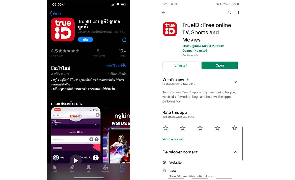1 ดาวน์โหลดแอปทรูไอดี จาก แอปสโตร์ หรือ เพลย์สโตร์ หรือ สแกน QR code เพื่อเข้าสู่การดาวน์โหลดแอป
