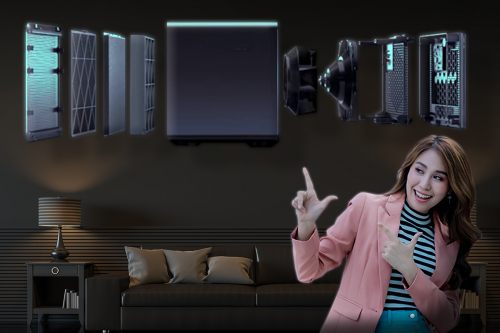 ตัวเครื่องฝังเซ็นเซอร์ Laser PM และเซ็นเซอร์ตรวจจับก๊าซเอาไว้ด้านหน้า ตรวจวัดอนุภาคขนาดเล็กกว่า 1 ไมครอนได้อย่างแม่นยำ แถมแสดงผลคุณภาพอากาศแบบ Real-time แจ้งเตือนระดับคุณภาพอากาศให้รู้ทันที่ผ่านหน้าจอที่แอบซ่อนไว้ด้านหน้า ด้วยการแสดงผลแบบ EasyView กลมกลืนเป็นหนึ่งเดียวไปกับตัวเครื่อง เอาไว้แสดงระดับค่ามลพิษทางอากาศขนาด PM1.0/2.5/10 ออกมาเป็นตัวเลขให้รู้ว่าอากาศสะอาดในห้องตอนนั้นขนาดไหน ทำให้เราเข้าใจง่ายขึ้นด้วยไฟแสดงสถานะ 4 สี