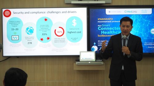 ซิสโก้สนับสนุน Connected Health โดยนำเทคโนโลยีไอทีมาเชื่อมโยงกับโรงพยาบาลเพื่อให้บริการแบบครบวงจรโดยไร้ข้อจำกัดของการบริการสุขภาพตั้งแต่ต้นน้ำจนถึงปลายน้ำที่เป็นผู้รับบริการปลายทาง ช่วยให้แพทย์สามารถหลีกเลี่ยงข้อผิดพลาด และให้คำแนะนำแก่ผู้ป่วยได้อย่างมีประสิทธิภาพ ที่สำคัญคือเข้าถึงผู้ป่วยได้ก่อนที่ผู้ป่วยจำเป็นต้องได้รับการรักษาพยาบาล และช่วยให้ผู้ป่วยมีบทบาทในการตัดสินใจเกี่ยวกับการรักษาพยาบาลของตนเองมากขึ้น ซิสโก้มีความยินดีที่เทคโนโลยีของเราช่วยสนับสนุนให้คณะแพทยศาสตร์ มหาวิทยาลัยเชียงใหม่ ซึ่งเป็นสถาบันการศึกษาชั้นนำทางการแพทย์เปลี่ยนรูปแบบการเรียนการสอน การรักษาที่ทันสมัย โดยไม่มีข้อจำกัด ส่งเสริมทักษะด้านดิจิทัลสำหรับการเรียนรู้ทางการแพทย์ให้สอดคล้องกับการเรียนการสอนทางการแพทย์ในศตวรรษที่ 21″