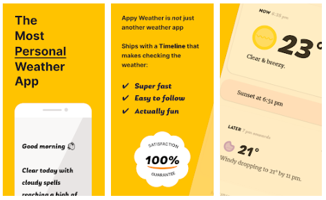 แอปที่จำเป็นสามารถใช้งานได้ทุกวัน รางวัลตกเป็นของ Appy Weather เรียกว่าเป็นแอปพยากรณ์สภาพอากาศส่วนบุคคลก็ว่าได้ เพราะแอปนี้ถูกออกแบบมาโดยคนที่ชอบเข้าไปเช็คสภาพอากาศเป็นประจำ