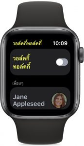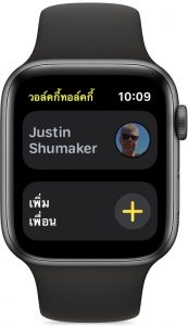 ตอนจะเริ่มใช้งานให้เปิดในแอปฯ Walkie-Talkie บน Apple Watch จากนั้นกด “เพิ่มเพื่อน” และก็เลือกรายชื่อผู้ติดต่อของคุณ ลิสต์ชื่อเพื่อนของคุณในมือถือมันก็จะเข้ามาที่นี่หมดเลย แต่ถ้าคุณกดเพื่อนที่เขาไม่มี Apple Watch มันก็จะเด้งกลับมาว่า “คนนี้ is not available for Walkie-Talkie” แต่ถ้าคนไหนมี มันก็จะขึ้นรอให้เพื่อนตอบรับ