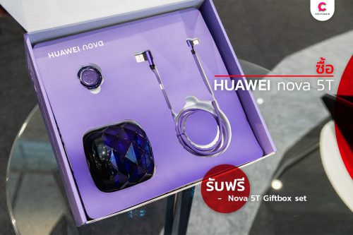 รุ่นนี้พลาดไม่ได้!! ราคาไม่แพง แต่สเปคแรง จัดเต็ม เมื่อซื้อ HUAWEI Nova 5T ราคาพิเศษ 10,990 บาท เอาไปเลย Nova 5T Giftbox Set มูลค่า 10,990 บาท กล่องดูสวย หรูมาก