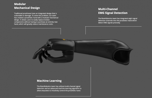 ปัจจุบันมีผู้พิการที่มือด้วนหรือแขนขาดในสหรัฐอเมริการาวๆ 2 ล้านคน ซึ่งมือเทียมที่วางขายในท้องตลาดนั้นจะแบ่งเป็น 2 ประเภทคือ มือที่เป็นโลหะที่ใส่แล้วทำให้เคลื่อนไหวได้อย่างจำกัด อีกประเภทคือมือหุ่นยนต์ที่เราต้องกดปุ่มเพื่อสั่งให้ทำงานที่ต้องการ แต่ BrainCo มาพร้อมนวัตกรรมใหม่ด้วยการใช้คลื่นไฟฟ้าจากสมองมาเป็นตัวช่วยสั่งงาน