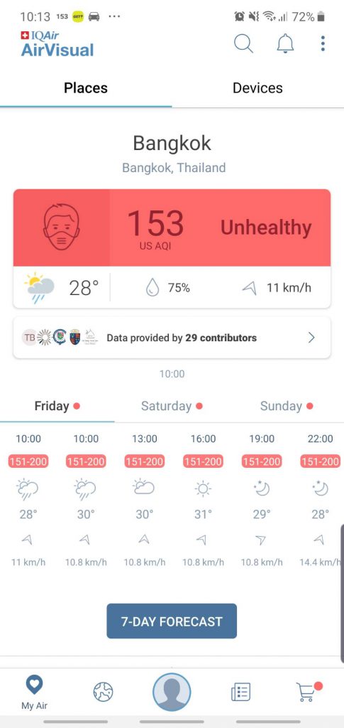 โดยแอปพลิเคชันนี้ สามารถตรวจเช็คคุณภาพอากาศได้ทั่วโลก หรือหากเป็นในประเทศก็สามารถเลือกดูได้ตามพื้นที่จังหวัดต่างๆ รวมถึงบอกช่วงเวลาได้ว่าในแต่ละวันช่วงไหนคุณภาพอากาศเป็นอย่างไร