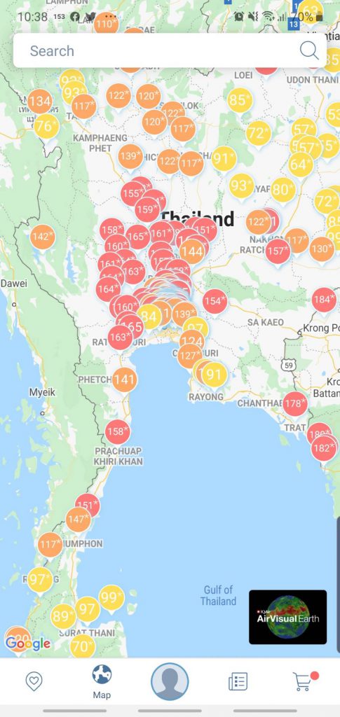 ปัจจุบันกรุงเทพมหานคร ดัชนีคุณภาพอากาศอยู่ในระดับที่มากกว่า 150 นับว่าเป็นระดับที่มีผลต่อผู้ที่ภูมิคุ้มกันต่ำ ไม่ควรออกจากบ้าน