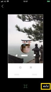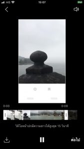 - พอมาถึงหน้านี้ ที่เราต้องทำก็คือตัด.. ตัดๆๆ ขยับซ้าย เคลื่อนขวา.. ให้คลิปที่เราต้องการเหลือส่วนที่เราชอบที่สุดที่จะเอามาเป็นวิดีโอพื้นหลัง.. เพราะเขาให้เวลาเราแค่ 15 วินาที เท่านั้น ตามที่เขาเขียนบอกไว้นั่นเลย เสร็จแล้วก็กด -ต่อไป- เลยจ้า