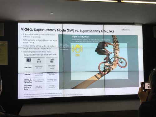 ตัวที่สามจะเป็นเลนส์ Ultra Wide ความละเอียด 12 ล้าน เทียบเท่าระยะ 123 องศา ช่วยให้เราเก็บภาพในมุมที่กว้างขึ้น นอกจากนั้นเลนส์ตัวนี้จะใช้ประโยชน์ในโหมด Super Steady สำหรับถ่ายวิดีโอโดยจะมีไอคอนรูปฝ่ามือที่หน้าจอ เมื่อเปิดโหมดนี้จะทำให้กล้องทำงานได้ใกล้เคียงกับ Action Cam ลดการสั่นไหวของภาพได้มากขึ้น แต่จะทำการบันทึกวิดีโอได้ที่ความละเอียดสูงสุดแค่ 1080p เท่านั้น ส่วนฟีเจอร์ต่างๆที่อยู่ในรุ่นพี่ก็เรียกว่ามาครบไม่ว่าจะเป็น Live Focus Video และ Zoom-In Mic ก็ครบ