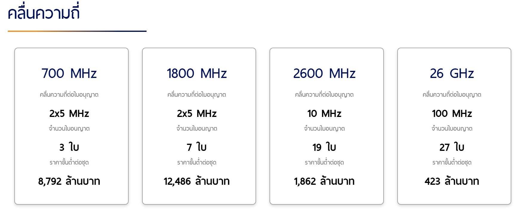 อย่างไรก็ตามการประมูลคลื่น 5G ในปี 2563 นี้ กสทช. ได้นำคลื่นออกมาประมูล ทั้งหมด 4 ย่านคลื่น ได้แก่ 700 MHz, 1800 MHz, 2600 MHz และ 26 GHzทางกสทช. จะประมูลทั้ง 4 คลื่นความถี่