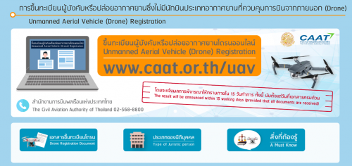 ลงทะเบียนทะเบียนผู้บังคับโดรนกับกรมการบินพลเรือนฯ