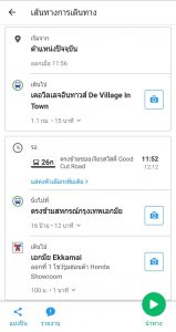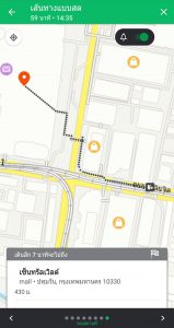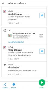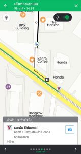 3. เมื่อเลือกแล้ว แอปฯจะแสดงเส้นทางและขั้นตอนการเดินทางอย่างละเอียดเลย (ถ้าเดินไกลมากอาจจะเรียกวินมอเตอร์ไซค์แทนได้)