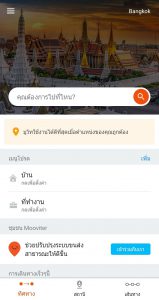 1. เปิดแอปขึ้นมาจะให้เราเลือกจุดเริ่มต้นและสถานที่ที่เราต้องการจะไป ซึ่งตรงหน้าแรกยังสามารถดูสถานีต่างๆที่ใกล้กับเราได้ที่คำว่า สถานี ตรงแถบข้างล่าง