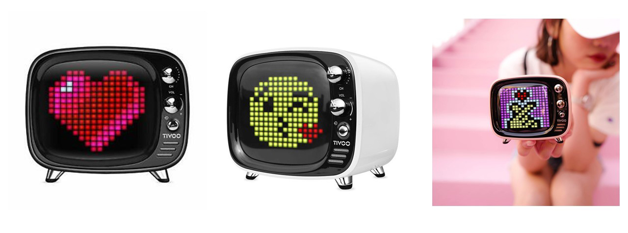ตัวแรกน่ารักมากๆ ลำโพง Bluetooth จาก Divoom Tivoo! ซึ่งๆๆ ไม่ใช่แค่ลำโพงเท่านั้นค่ะ เวลาก็บอกได้ แถมหน้าจอข้างหน้ายังสามารถกำหนดรูปแบบได้จาก Application เป็นลักษณะของ Pixel Art ค่ะ แอบบอกว่ามีให้เลือกเยอะมากๆ เก๋สุดๆ แถมยังสามารถออกแบบ pixel art เป็นในรูปแบบของตัวเอง เป็นชื่อย่อเรากับคนที่แอบชอบให้เพ้ออยู่ที่บ้านก็ได้! รูปทรงเป็นทีวีสไตล์วินเทจๆ หน่อยๆ ปุ๊กปิ๊กๆ เห็นแล้วอารมณ์ดีแน่นอน! ส่วนคุณภาพเสียง เคยไปเล่นมาแล้วค่ะถือว่าดีเลยสำหรับขนาดแบบนี้ ลูกเล่นแพรวพราว คุ้มแน่นอนค่ะ!