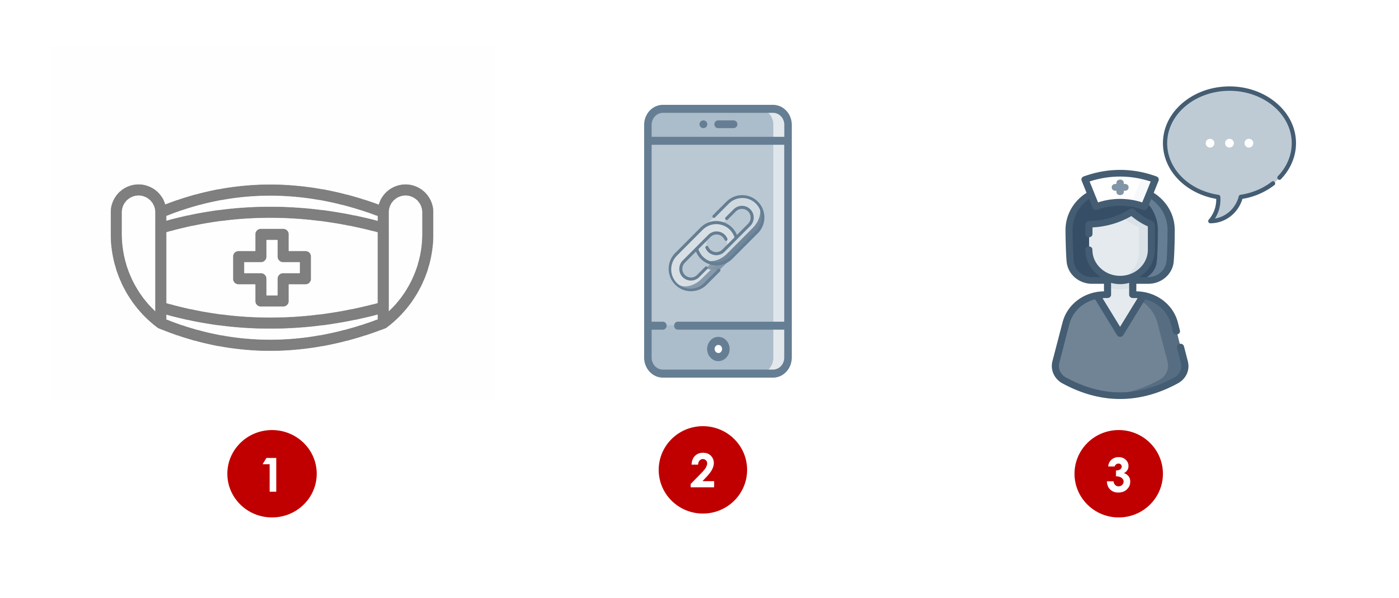 - จะมีบริการ ตอบคำถาม chat bot เพื่อตรวจสอบสุขภาพของเราด้วยตัวเอง หากเราอยู่ในเกณฑ์ขั้นที่ต้องพบแพทย์ จะมี ระบบ telehealth และ telemedicine มารองรับเพื่อให้คำปรึกษาก่อนที่จะมาพบแพทย์จริงๆ เพราะทางโรงพยาบาลไม่ต้องการให้ผู้ป่วย มาพร้อมๆกัน ที่ รพ. แต่ทางโรงพยาบาลจะส่งทีมแพทย์ ไปรับเพราะหากเข้าเกณฑ์แล้วจะต้องใช้ ห้อง ลดความดัน เคลื่อนที่แบบพิเศษไปรับ จะได้ลดการแพร่กระจายเชื้อ