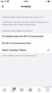 • จากนั้นดูว่าเราเลือกข้อไหนอยู่.. ถ้าเป็น On Mobile Data and Wi-Fi Connections ให้เปลี่ยนเป็น On Wi-Fi Connections Only หรือ Never Autoplay Videos