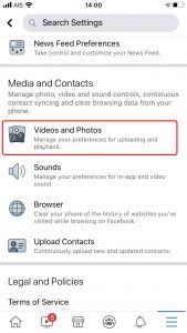 • เลื่อนต่อค่ะ.. ไถๆลงมาจนเจอ Media and Contacts.. แล้วก็เลือก Videos and Photos