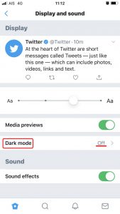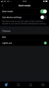 - จากนั้นก็เข้าไปเปิดใช้งาน Dark Mode ก่อนนะคะ.. จากนั้นก็จะเห็นว่าข้างล่างมีให้เลือก -Dim- และ -Lights out- หรือก็คือหรี่ไฟกับปิดไฟบนเวอร์ชันของ PC นั่นเอง จากนั้นก็เราเลือกเลยค่ะ.. ชอบอันไหนเลือกอันนั้น.. อ่อ..เวอร์ชันสมาร์ทโฟนเขาไม่มีสีไอคอนให้เลือกนะคะ..