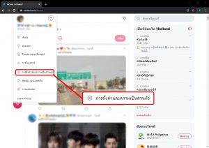 - เมื่อเราเปิดหน้า Twitter ขึ้นมาเป็นหน้าโฮม.. ให้เราเลือก -เพิ่มเติม- หรือสัญลักษณ์จุด 3 จุดทางซ้าย.. ตามภาพในกรอบสีแดงเลยนะคะ