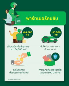 - เปิดรับสมัครพาร์ทเนอร์ผู้จัดส่งอาหาร-พัสดุเพิ่มขึ้นอย่างต่อเนื่อง เพื่อเปิดโอกาสในการสร้างรายได้เสริมให้กับคนไทยในภาวะชะงักงันทางเศรษฐกิจ โดยในช่วง 2 เดือนที่ผ่านมา (กุมภาพันธ์ – มีนาคม) แกร็บได้รับพาร์ทเนอร์เพิ่มขึ้นแล้วกว่า 29,000 คน และเตรียมเปิดรับเพิ่มอีกกว่า 35,000 อัตราในเดือนเมษายนนี้ เพื่อให้สามารถรองรับการให้บริการกับคนไทยที่ไม่ต้องการเดินทางออกจากบ้านตามมาตรการเว้นระยะห่างทางสังคมได้
