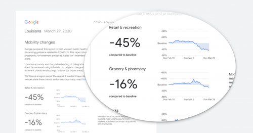 นับตั้งแต่วันนี้เป็นต้นไป Google จะเผยแพร่รายงานความเคลื่อนไหวของชุมชนท่ามกลางสถานการณ์การแพร่ระบาดของไวรัส COVID-19 หรือ COVID-19 Community Mobility Reports เพื่อให้ข้อมูลเชิงลึกเกี่ยวกับการเปลี่ยนแปลงที่เกิดขึ้นจากการทำงานจากบ้าน การอยู่แต่ภายในที่พักอาศัย และนโยบายอื่น ๆ เพื่อไม่ให้ตัวเลขผู้ติดเชื้อเพิ่มสูงขึ้น โดยรายงานดังกล่าวได้รับการพัฒนาให้สามารถนำไปต่อยอดให้เกิดประโยชน์ ในขณะเดียวกันก็ยังคงยึดตามแนวทางปฏิบัติและนโยบายความเป็นส่วนตัวที่เข้มงวดของ Google
