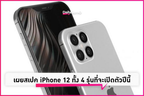 iPhone 12 ที่จะเปิดตัวในปีนี้จะประกอบไปด้วยรุ่นหน้าจอ 5.4 นิ้ว รุ่นจอ 6.1 นิ้ว 2 รุ่นโดยจะแยกเป็นรุ่นธรรมดาและรุ่น Pro สุดท้ายคือรุ่น Pro Max หน้าจอ 6.7 นิ้ว นอกจากขนาดหน้าจอแล้ว สิ่งที่แตกต่างอีกเรื่องก็คือวัสดุของตัวเครื่องโดย รุ่น Pro และ Pro Max จะใช้โครงที่เป็นสแตนเลสสตีล ส่วนอีกสองรุ่นนั้นจะใช้วัสดุที่เป็นอลูมิเนียมแทน ในฟากของสเปคนั้นทั้ง 4 รุ่นจะมาพร้อมกับชิป A14 และรองรับการเชื่อมต่อ 5G ทุกรุ่น