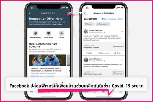 Facebook เตรียมปล่อยฟีเจอร์ใหม่โดยใช้ชื่อว่า “Community Help” ให้เพื่อนบ้านในระแวกเดียวกันให้ความช่วยเหลือและขอความช่วยเหลือระหว่างกันได้ในช่วงของการแพร่ระบาดของเชื้อไวรัส Covid-19