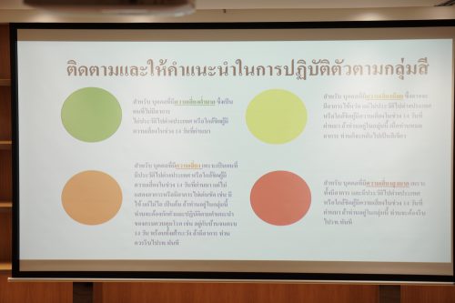- สีเหลือง – ความเสี่ยงน้อย อาจจะมีอาการของไข้หวัด แต่ไม่ได้เดินทางไปต่างประเทศหรือใกล้ชิดกับผู้ติดเชื้อในช่วง 14 วันที่ผ่านมา