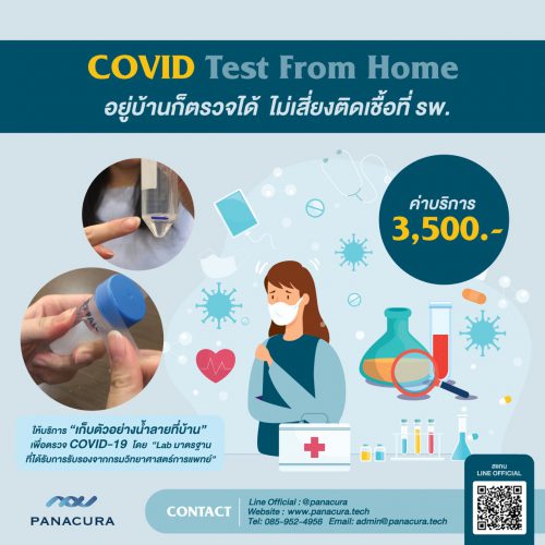 ในช่วงที่บุคลากรและเครื่องมือทางการแพทย์ไม่เพียงพอต่อการให้บริการประชาชนได้อย่างทั่วถึง ทาง PANACURA หนึ่งในสตาร์ทอัพผู้ให้บริการวิเคราะห์ข้อมูลสุขภาพจาก DNA ได้เปิดให้บริการ COVID TEST FROM HOME เปิดให้ประชาชนสามารถส่งตัวอย่างน้ำลายมาตรวจหาความเสี่ยงติดโรค COVID-19 โดยไม่ต้องออกจากบ้าน ไม่ต้องเสี่ยงต่อการติดเชื้อที่โรงพยาบาล ไม่เพิ่มภาระแก่บุคลากรทางการแพทย์ และรู้ผลภายใน 24 ชั่วโมง ในราคาเพียง 3,500 บาท เทียบเท่าค่าตรวจในโรงพยาบาลรัฐ