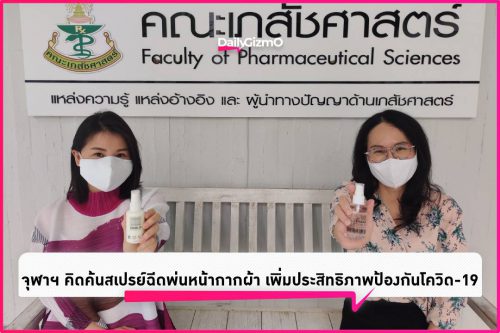 หน้ากากอนามัยเป็นของจำเป็นที่ทุกคนขาดไม่ได้เพื่อสร้างความมั่นใจในการใช้งาน ทางทีมวิจัยจุฬาฯ คิดค้นสเปรย์ใช้สำหรับพ่นหน้ากากผ้า เพื่อเพิ่มประสิทธิภาพในการป้องกันไวรัส กันน้ำ กรองเชื้อโรค