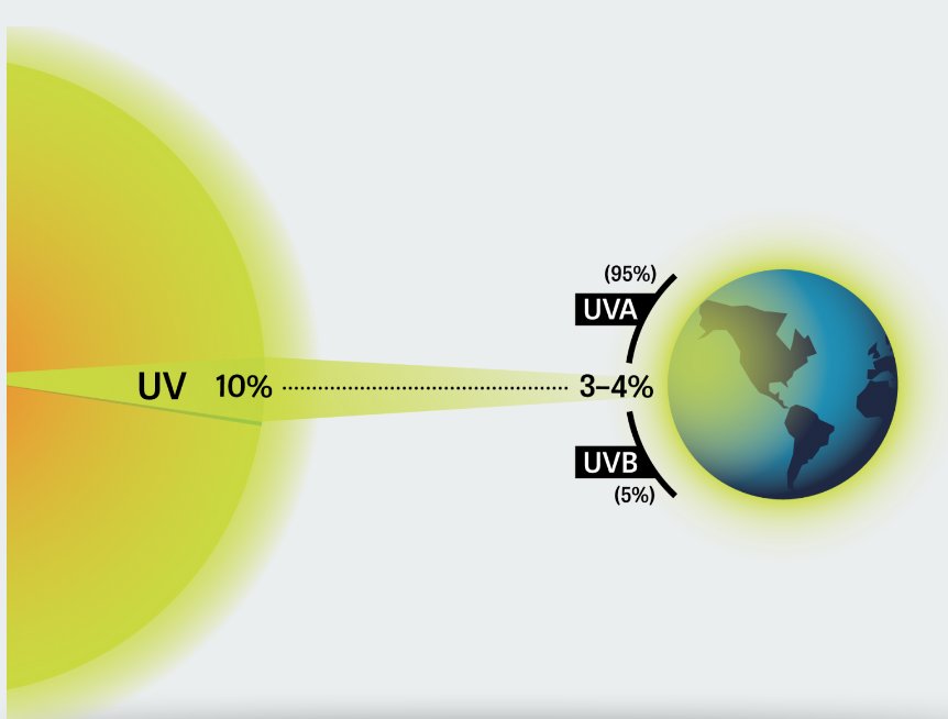 อย่างไรก็ตามด้วยความโชคดีที่โลกของเรามีชั้นบรรยากาศและชั้นโอโซนที่สามารถปกป้อง สิ่งมีชีวิตบนโลกให้ห่างไกลอันตรายจากสามรังสีแรกได้ คือ รังสีแกมมา เอกซเรย์และ UV แต่ในความเป็นจริงแล้ว จะมีรังสี UV บางส่วนที่สามารถตกลงมาถึงพื้นโลกได้