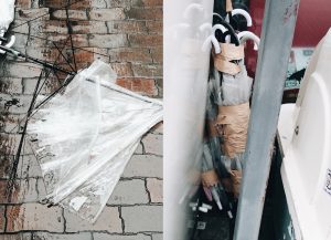 อีกหนึ่งภาพจำที่ติดตาผู้คนไปทั่วโลกก็คือภาพของคนญี่ปุ่นที่กางร่มใส ร่มไวนิลใสแจ๋วที่เป็นที่นิยมของญี่ปุ่นนั้นเป็นสิ่งที่หาซื้อได้ง่ายมากๆ ร้านสะดวกซื้อแบรนด์ต่างๆ ร้าน 100 เยน ทุกที่ล้วนหาซื้อได้ในราคาไม่แพงสมกับเป็นประเทศที่มีสภาพอากาศแปรปรวน เราเองก็เคยต้องวิ่งเข้าไปซื้อร่มในเซเว่นฯเหมือนกัน และนั่นก็ทำให้มีร่มใสที่ทำจากไวนิลนี้ถึงกว่า 80 ล้านคันถูกผลิตออกมาในแต่ละปี และนั่นก็ส่งผลมาถึงขยะจากร่มที่ชำรุดแล้วมากมายเป็นภูเขาเช่นกัน..