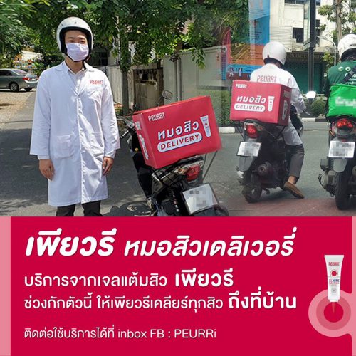 ช่วงกักตัวนี้ใครกลุ้มใจปัญหาสิว คลินิกก็ปิด สิวจะระเบิด หมดห่วงได้เลยจ้า เพียงแค่เรียกบริการหมอสิวเสิร์ฟถึงบ้านส่งเจลแต้มสิวฟรีถึงบ้าน สำหรับเพียวรี่หมอสิวเดลิเวอรี่ ที่เป็นการส่งผู้เชี่ยวชาญไปให้คำปรึกษาและส่งเจลแต้มสิวไปให้กับผู้บริโภคทดลองใช้ เพราะด้วยสถานการณ์ขณะนี้คลินิกผิวพรรณและความงามปิดตัวลงบางคนบ่นถึงปัญหาสิวขึ้น เพราะอาจเกิดจากภาวะความเครียดและมีอาการแพ้จากสิว หรือจากการสวมใส่หน้ากากอนามัย รวมถึงสภาพอากาศและพฤติกรรมการรับประทานอาหาร หาที่รักษาไม่ได้