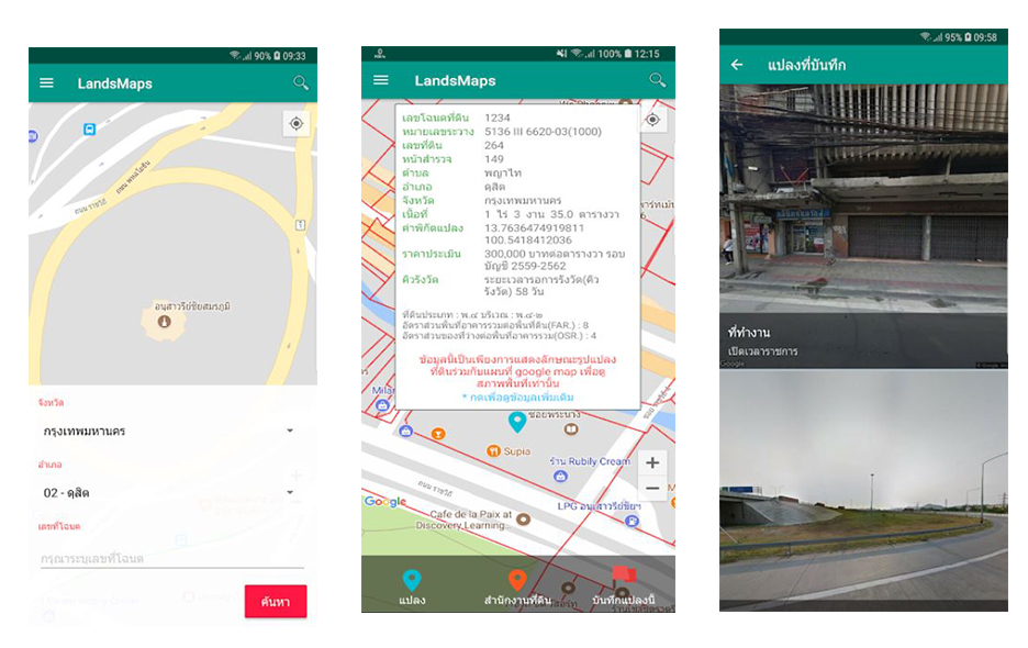 ทางกรมที่ดินได้เริ่มให้บริการแอปพลิเคชัน “LandsMaps” มาตั้งแต่ปี 2559 เพื่อให้ประชาชนสามารถค้นหาตำแหน่งแปลงที่ดินจากเลขที่โฉนด รูปแปลงที่ดิน ราคาประเมินที่ดิน สิ่งแวดล้อมรอบๆแปลงที่ดิน ตรวจสอบเส้นทางเพื่อเดินทางไปยังแปลงที่ดินดังกล่าว รวมทั้งตรวจสอบสถานที่ตั้งของสำนักงานที่ดินที่เกี่ยวข้องได้ ผ่านการใช้งานผ่านคอมพิวเตอร์หรือสมาร์ทโฟน ล่าสุดได้ร่วมมือกับกรุงเทพมหานครและกรมโยธาธิการและผังเมืองอัปเดตเวอร์ชันใหม่ ในการนำข้อมูลผังแนวเขตการใช้ประโยชน์ในที่ดิน (Zoning) มาซ้อนทับบน Layer ของรูปแปลงที่ดิน เพื่อสามารถตรวจสอบได้ว่าที่ดินหรือบริเวณที่สนใจสามารถทำประโยชน์ประเภทใดได้บ้าง