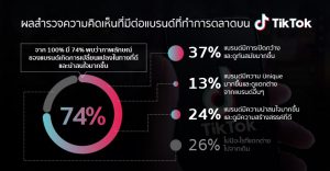 ล่าสุดทาง TikTok ได้มีการเผยข้อมูลผลสำรวจความคิดเห็นของผู้บริโภคที่มีต่อแบรนด์ที่ทำการตลาดบน TikTok และพบว่าจากการสำรวจ 100% มี 74% ที่เห็นว่าภาพลักษณ์ของแบรนด์เกิดการเปลี่ยนแปลงไปในทางที่ดีและน่าสนใจมากขึ้นหลังจากมาทำการตลาดบน โดยแบ่งเป็น 37% เห็นว่าแบรนด์มีการเปิดกว้างและดูทันสมัยมากขึ้น และ 13% เห็นว่าแบรนด์มีความ Unique มากขึ้นและดูแตกต่างจากแบรนด์อื่นๆ และ 24% มองว่า แบรนด์มีความน่าสนใจมากขึ้นและดูมีความสร้างสรรค์ที่ดี ขณะที่อีก 26% รู้สึกว่าไม่มีอะไรที่แตกต่างไปจากเดิม